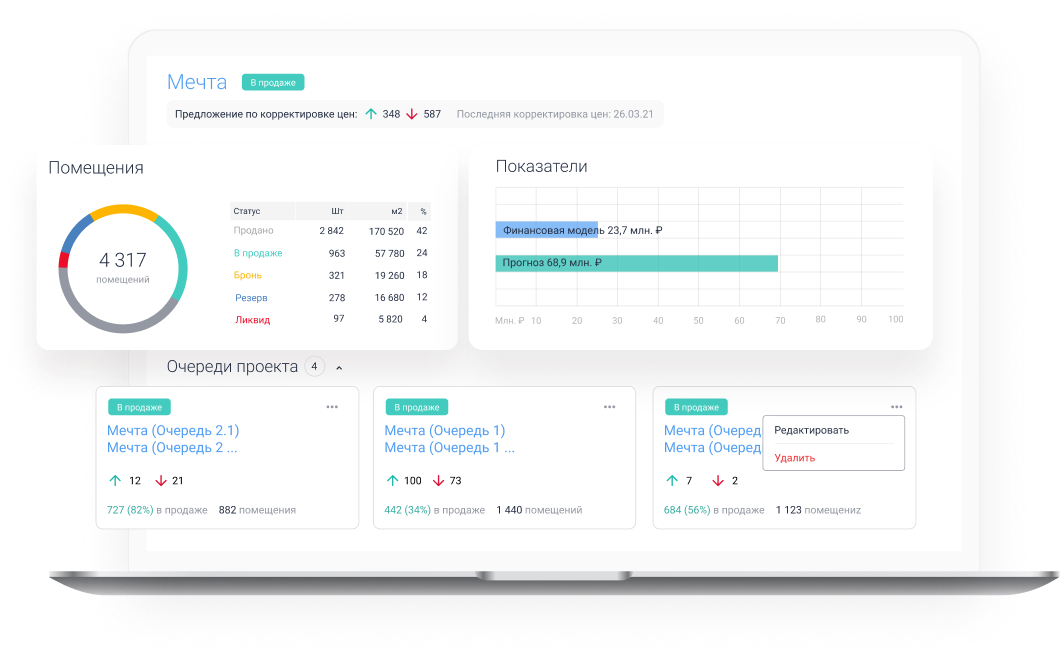 - Виртуальный кабинет девелоперской компании, где аналитики и руководители видят всю важную информацию